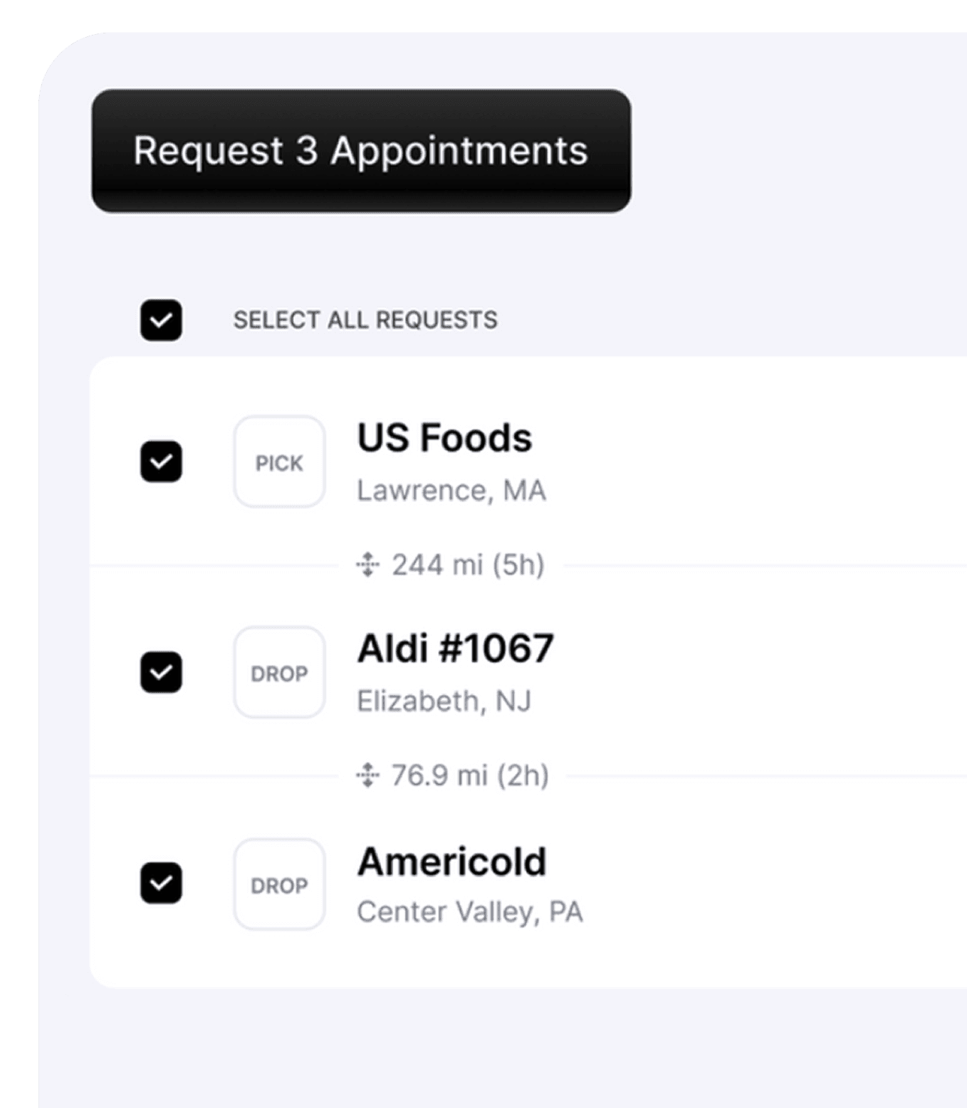 Works with any facility — email, phone, or portal — and supports multistop and complex workflows.